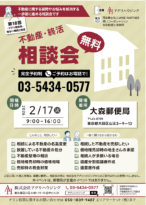 アグリハウジング様主催『不動産・終活 無料相談会』 が下記日程で開催されます。
