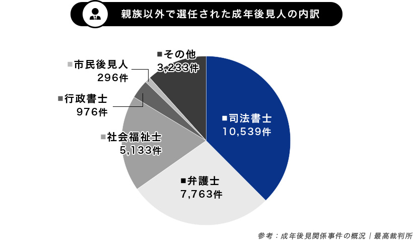 このような取り組みが高く評価されているため、司法書士が成年後見人に選任される割合が多いといえます。