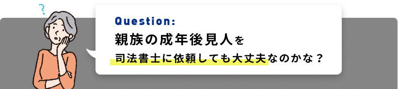 正直、成年後見という制度自体がよく理解できてないなか、司法書士に依頼するのが本当に正しいのか不安な方は多いはずです。